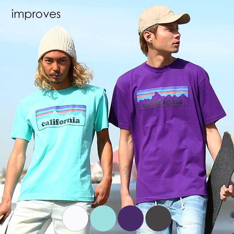 オリジナルボックスロゴ Tシャツ メンズ 半袖 クルーネック California ロゴ プリント ホワイト ブラック パープル グリーン 白 黒 紫 502 Improves インプローブス 通販 Yahoo ショッピング